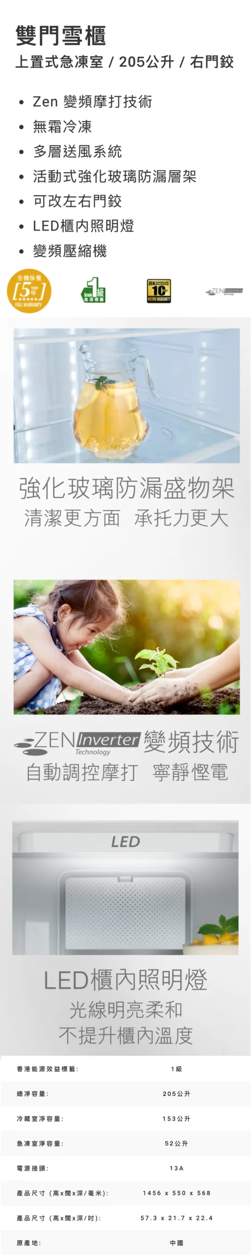 惠而浦 Whirlpool 上置式冷凍雙門變頻雪櫃 205公升 右門鉸 WF2T204RPS