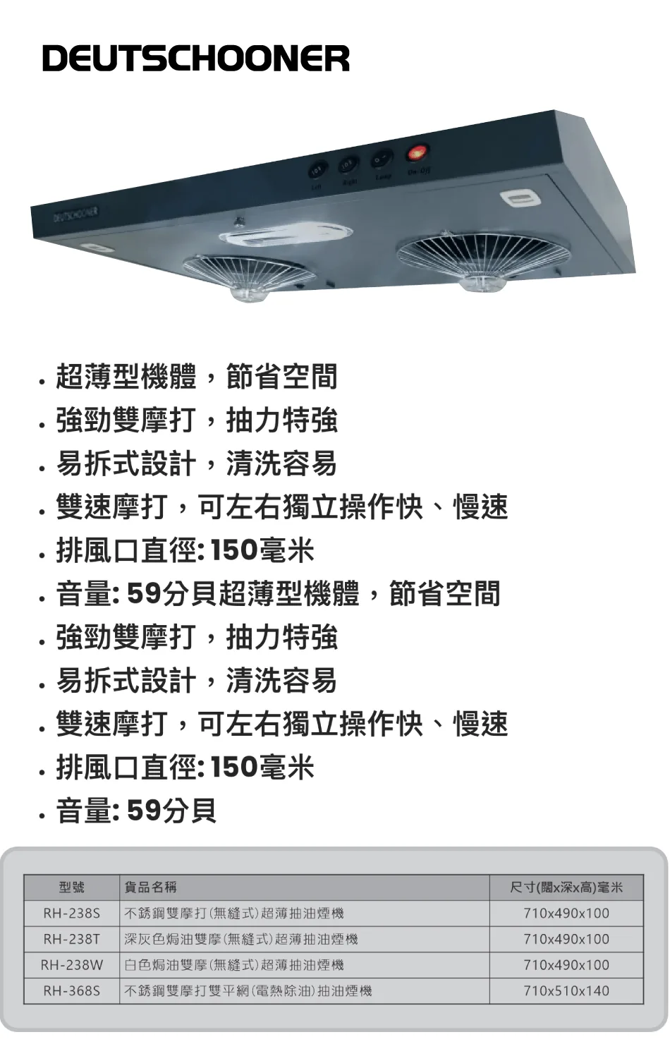 Deutschooner 朗高 無縫易拆式抽油煙機 RH-238T