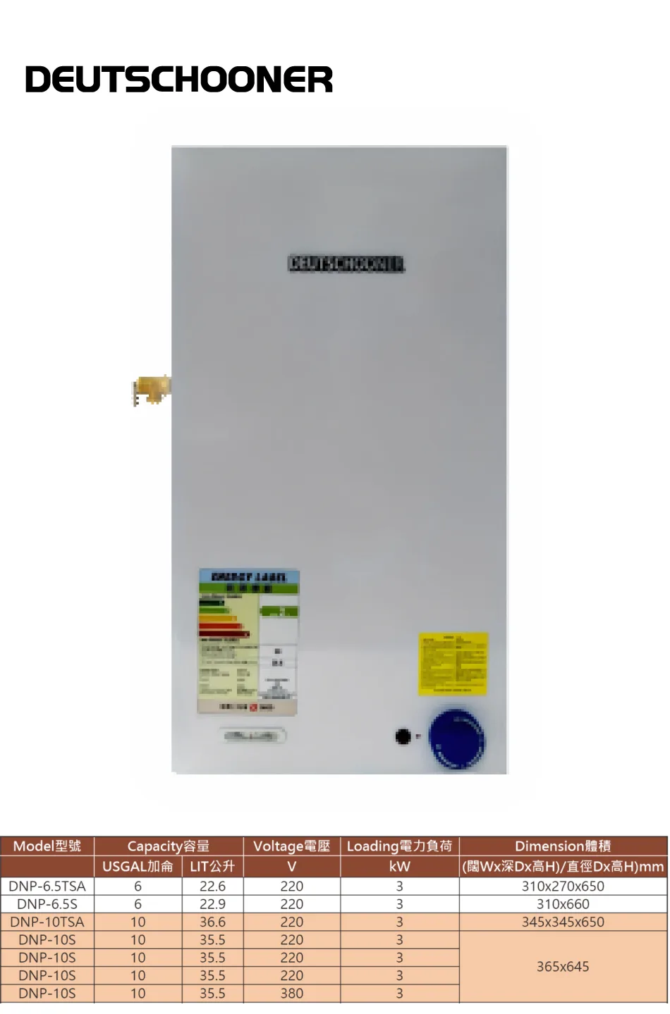 Deutschooner 朗高 35.5公升無排氣管中央壓力多位儲水式電熱水爐 (單相) DNP-10TSA
