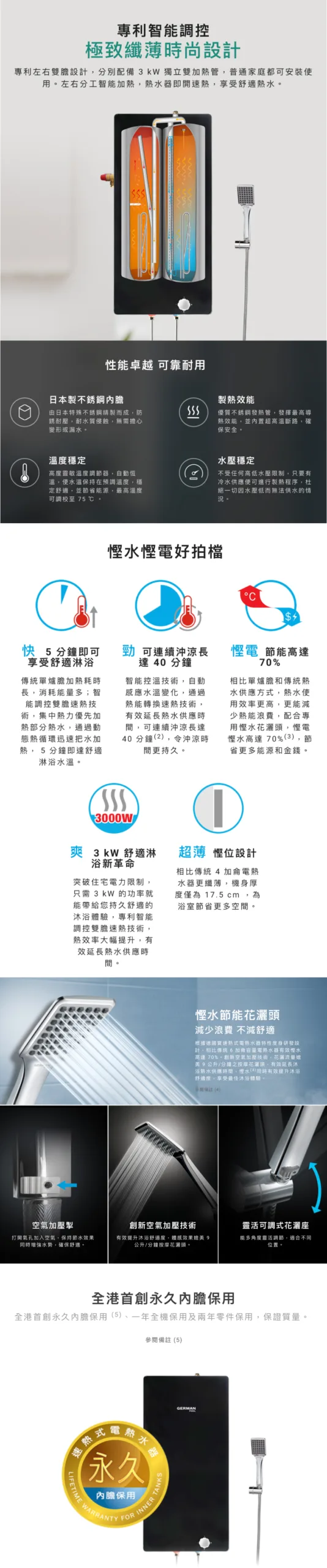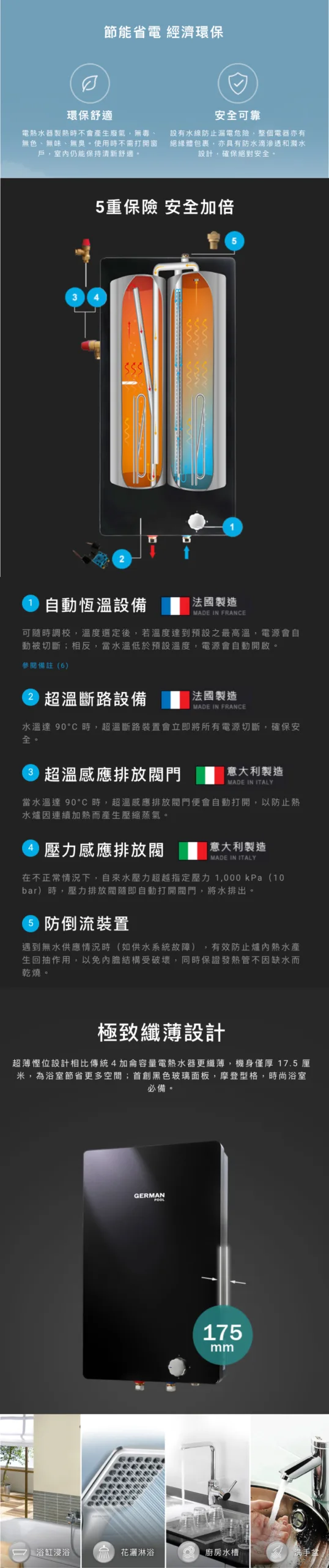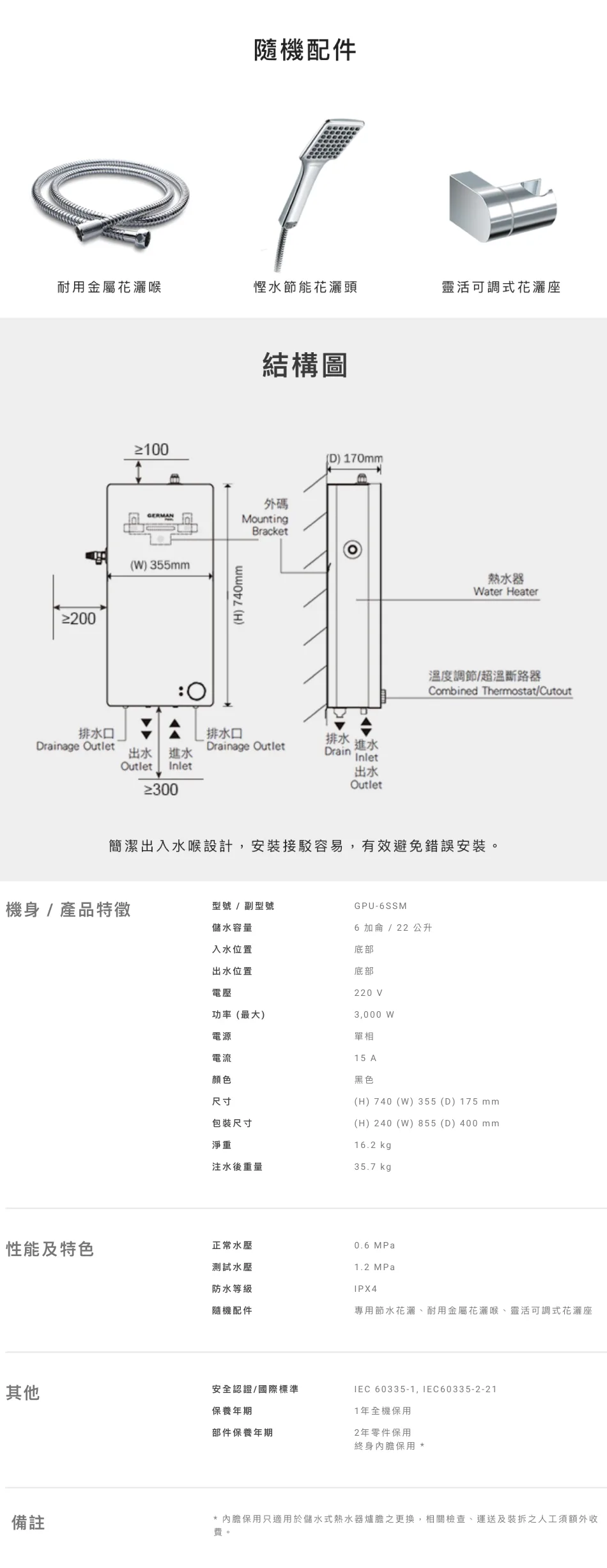 German Pool 德國寶 22公升中央型鏡面系列速熱式電熱水器 (單相) GPU-6SSM