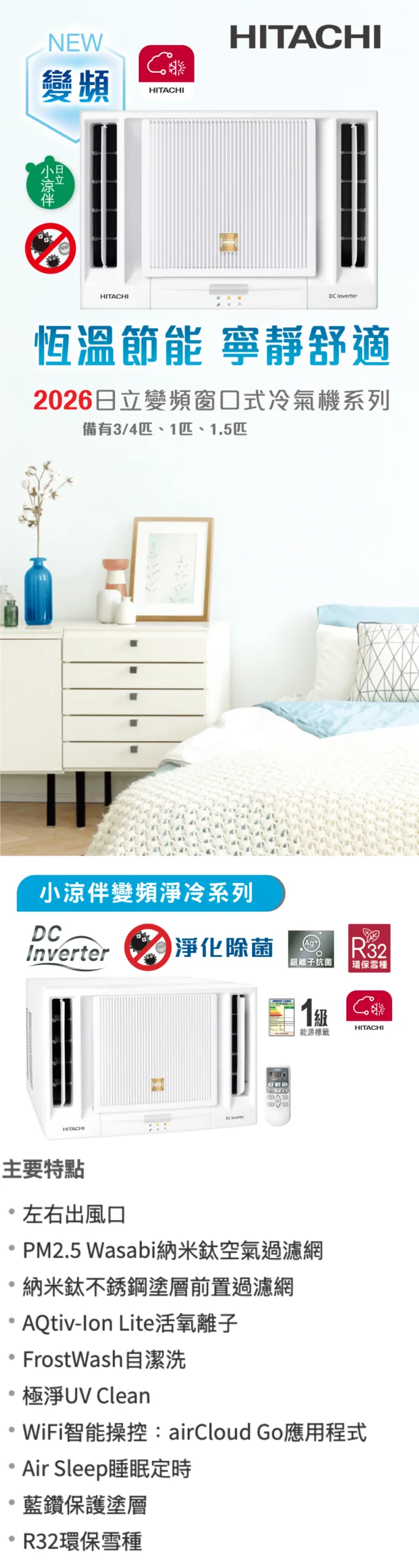 Hitachi 日立 1.5匹 R32 變頻淨冷窗口式冷氣機 RAW-ZH13CCK