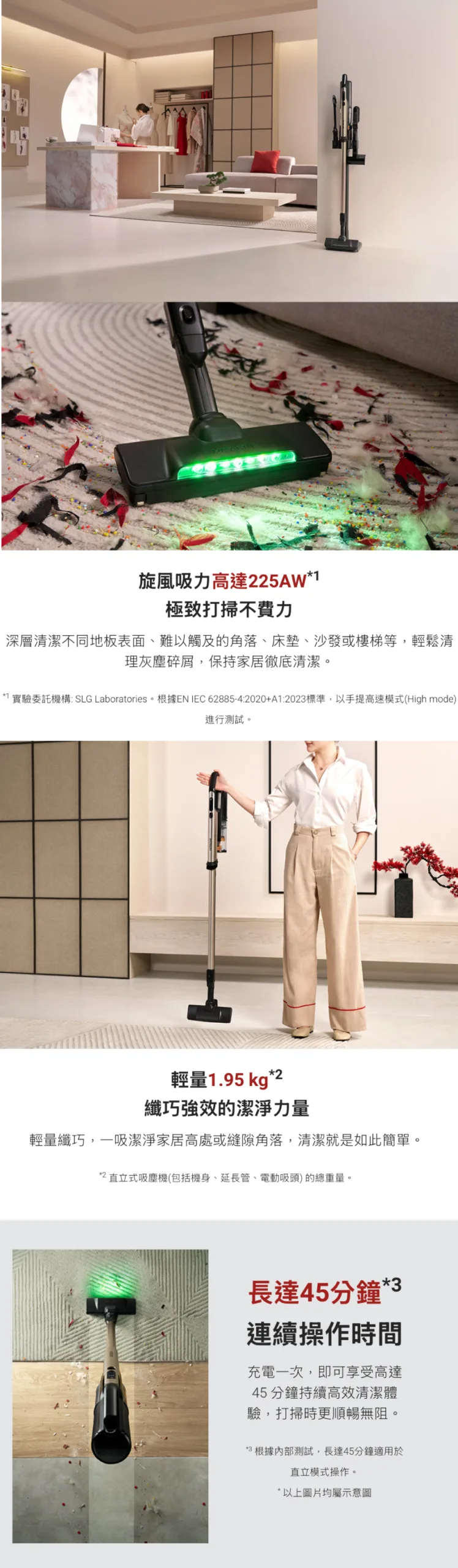 • 旋風技術,強勁吸力高達225AW
