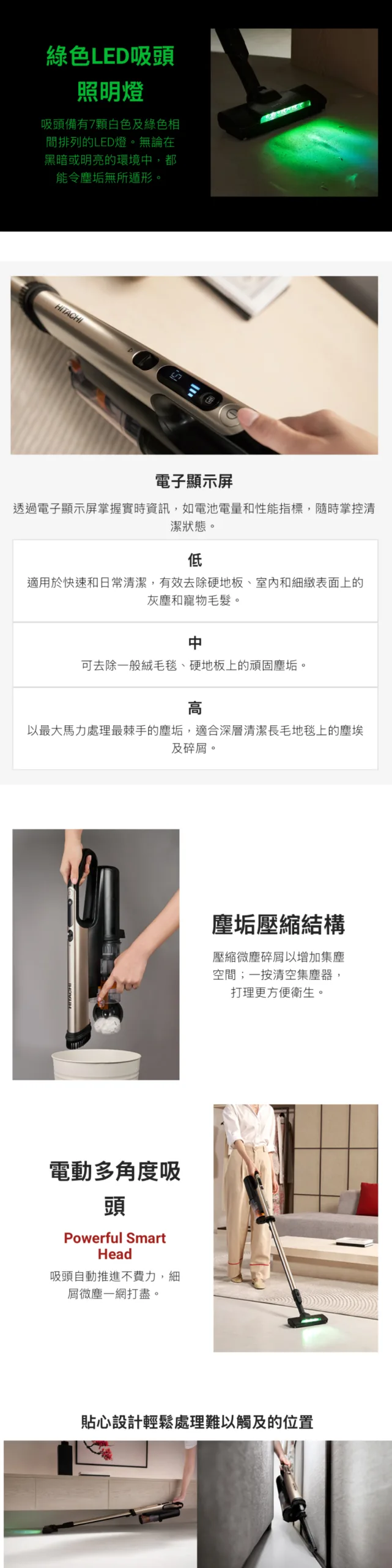• 綠色LED照明燈,塵垢無所遁形