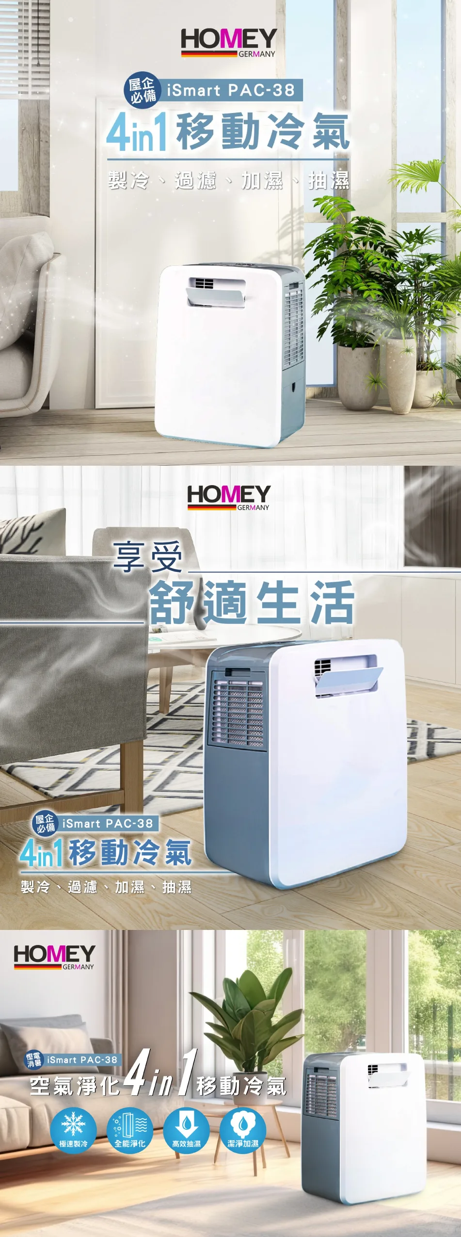Homey 家美牌 iSmart 4 IN 1 空氣淨化移動冷氣 PAC-38