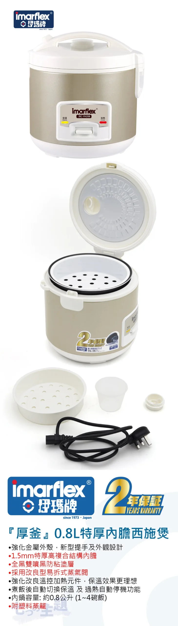 Imarflex 伊瑪牌 「厚釜」特厚內膽西施電飯煲 (0.8公升) IRC-YH20B