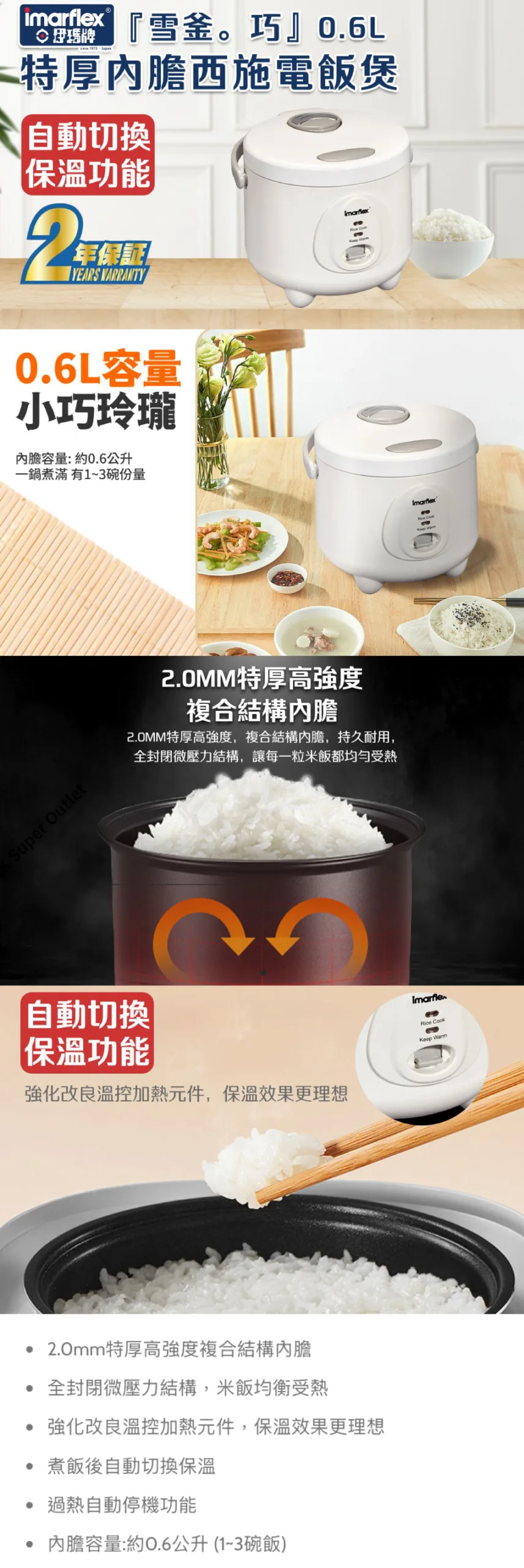 Imarflex 伊瑪牌 「雪釜.巧」特厚內膽西施電飯煲 (0.6公升, 1-2人用) IRC-YH15