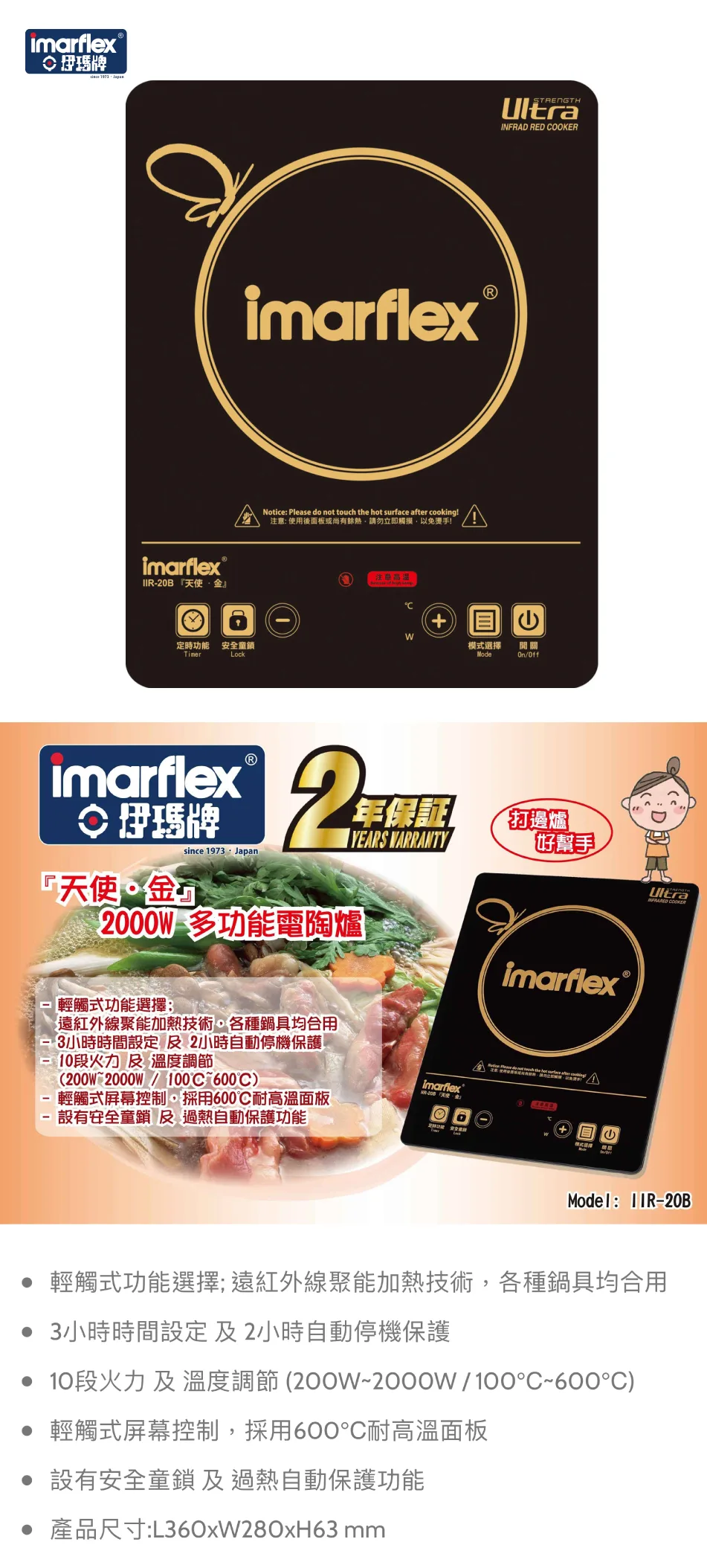 Imarflex 伊瑪牌 『天使.金』多功能單頭電陶爐 2000W IIR-20B