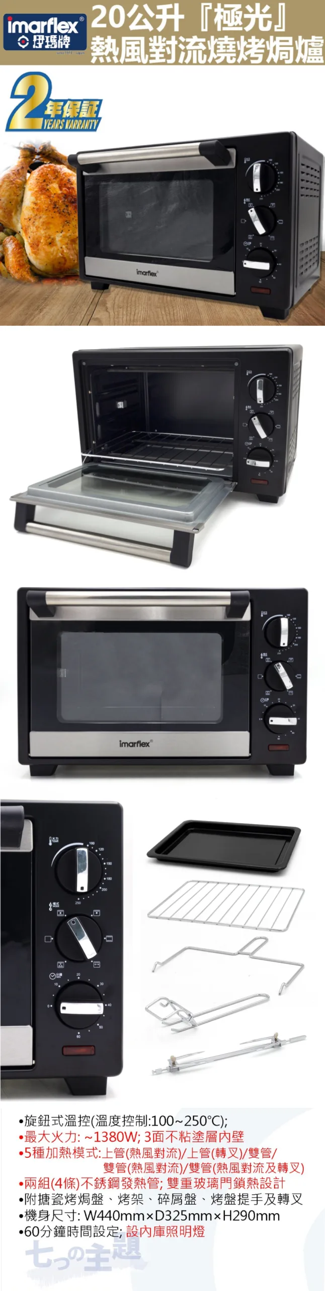 Imarflex 伊瑪牌 『極光』熱風對流燒烤焗爐 (20公升) IOV-20BC