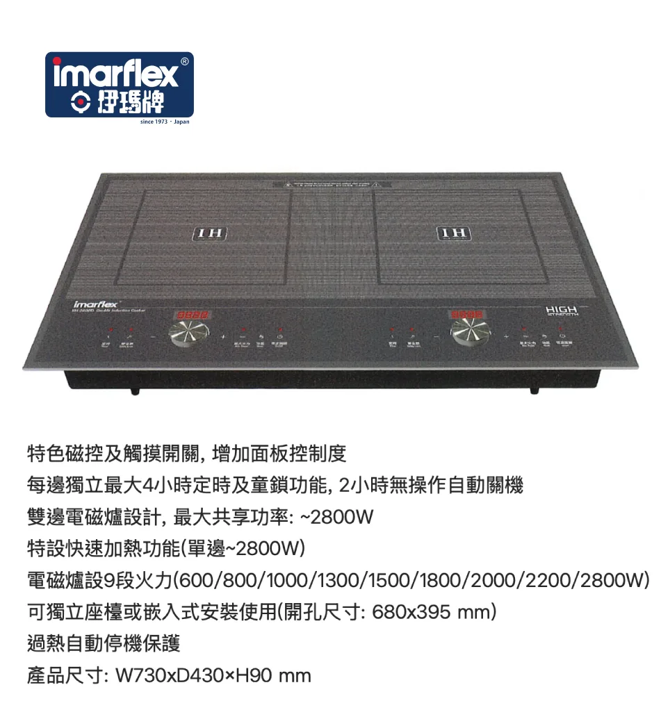 Imarflex 伊瑪牌 『極品』2800W 磁控 嵌入式/座檯式 雙頭電磁爐 IIH-2800D