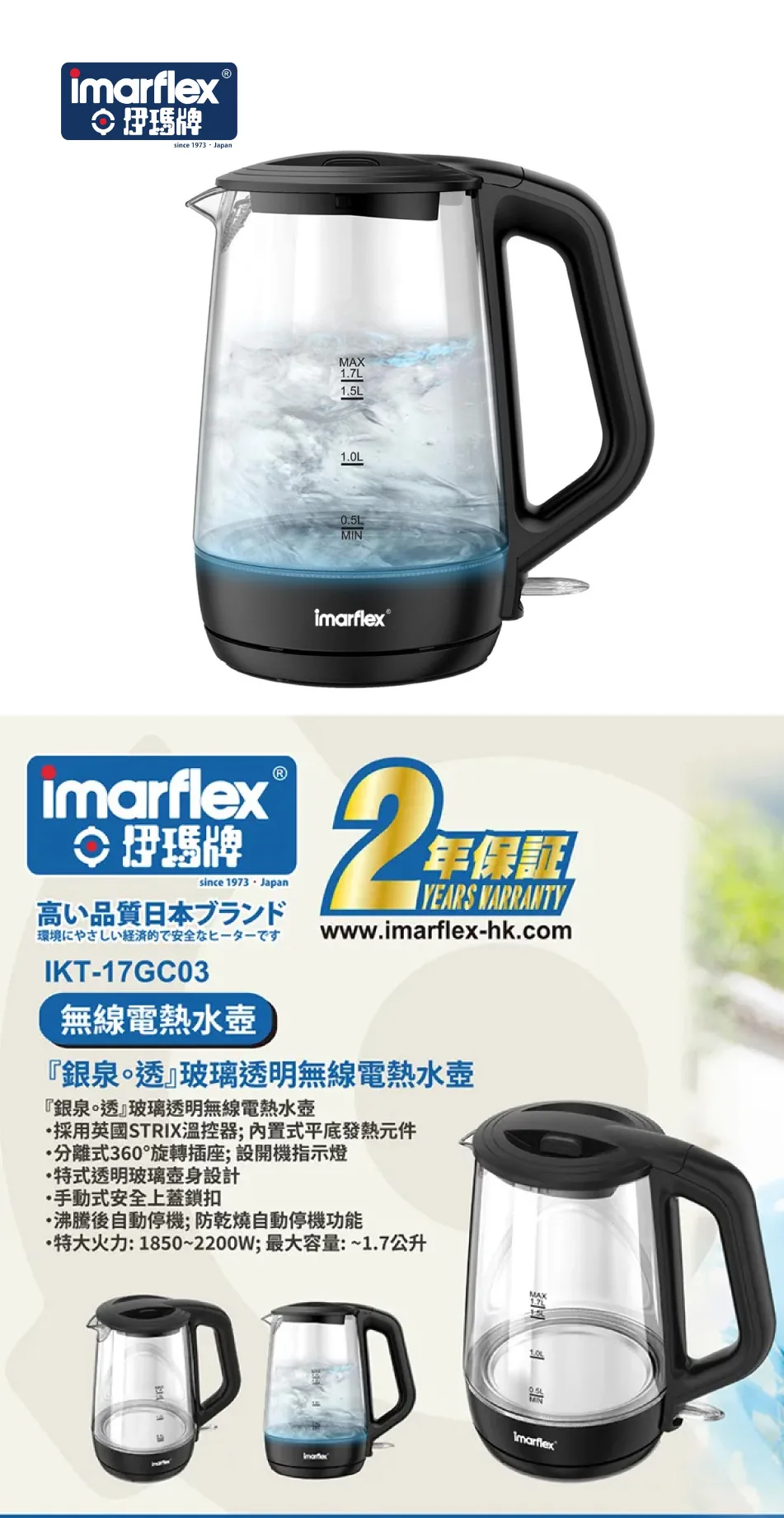 Imarflex 伊瑪牌 『銀泉。透』玻璃透明無線電熱水壺 (1.7公升) IKT-17GC03