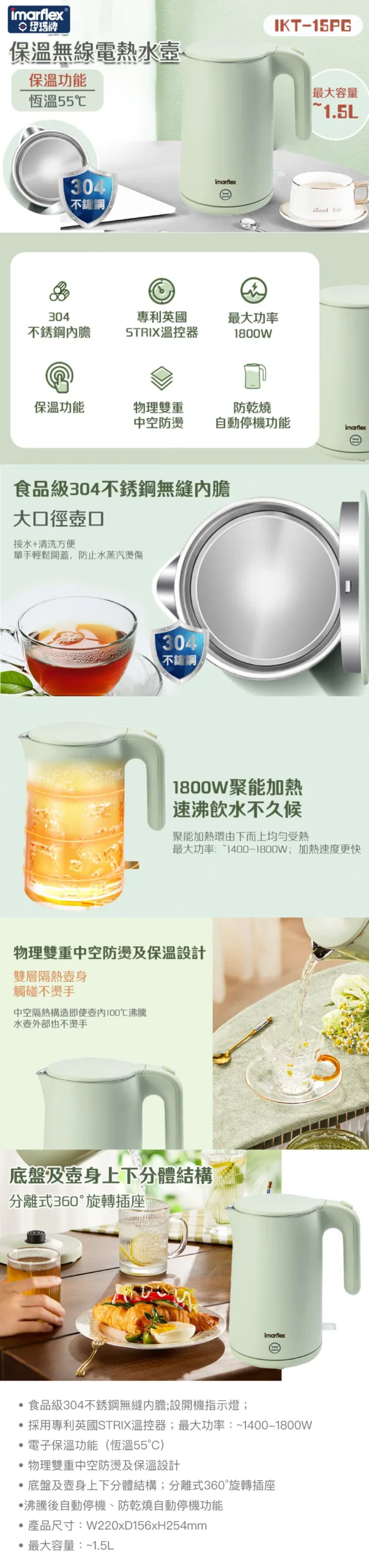 Imarflex 伊瑪牌 電子保溫無線電熱水壺 (1.5公升) IKT-15PG