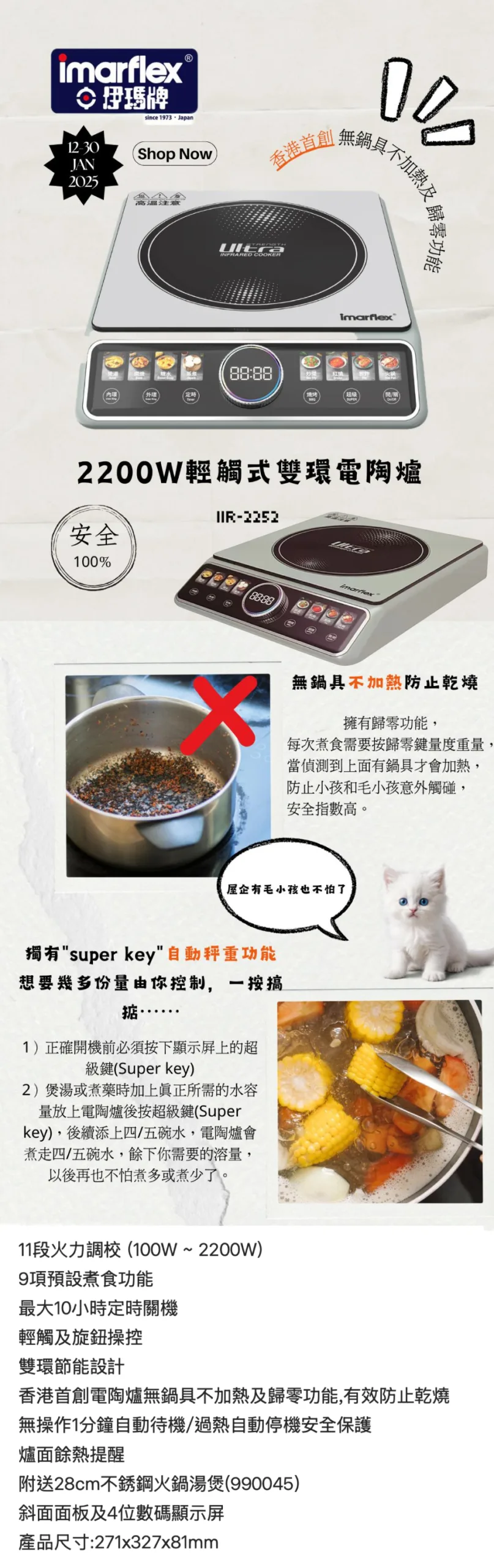 Imarflex 伊瑪牌 2200W 輕觸式座檯雙環單頭電陶爐 IIR-2252