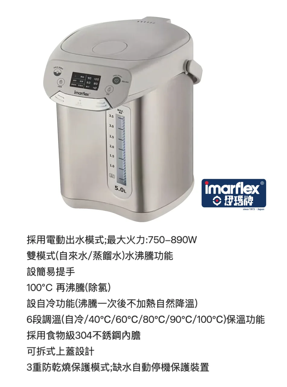 Imarflex 伊瑪 5.0公升 『純湯・金』微電腦電熱水瓶 IAP-50HE