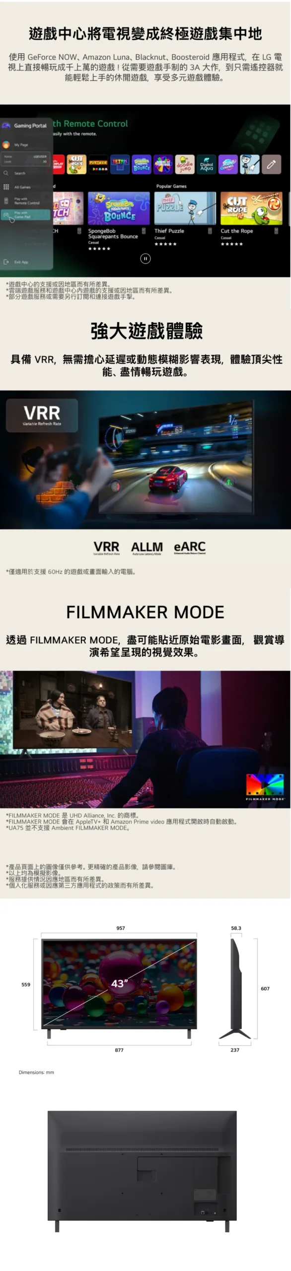 LG 樂金 43吋 UHD AI UA75 4K 智能電視 (2025) 43UA7550PCA