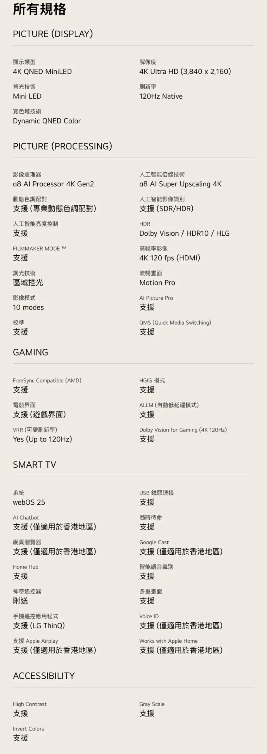 • 全新 Dynamic QNED Color 提供極致豐富的色彩