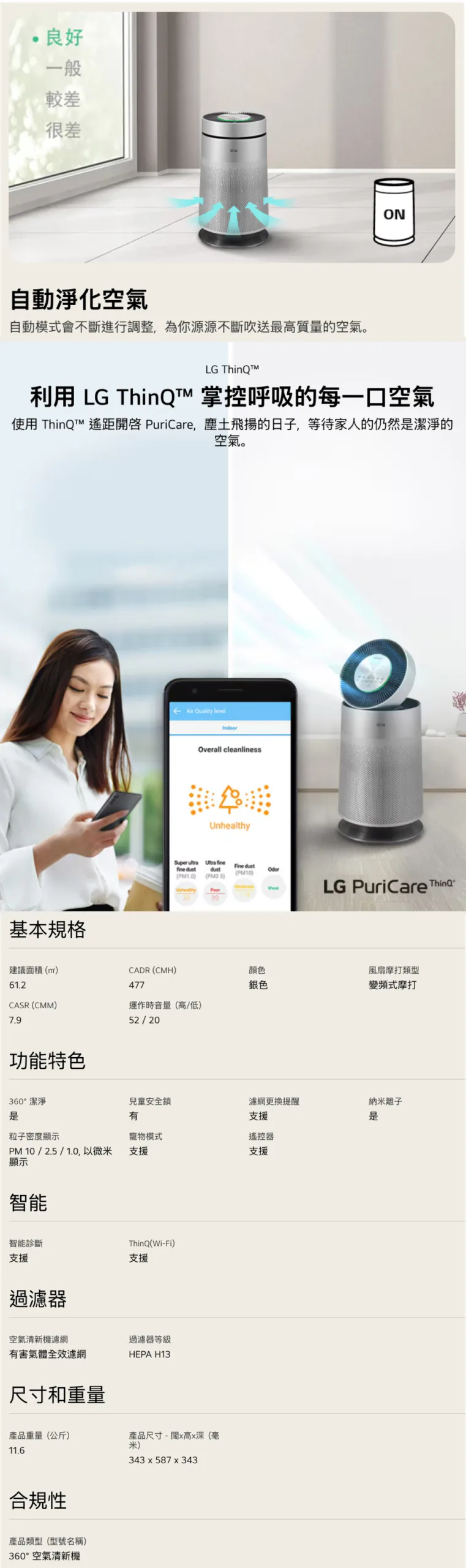 LG 樂金 PuriCare 360° 空氣清新機 AS65GDST0
