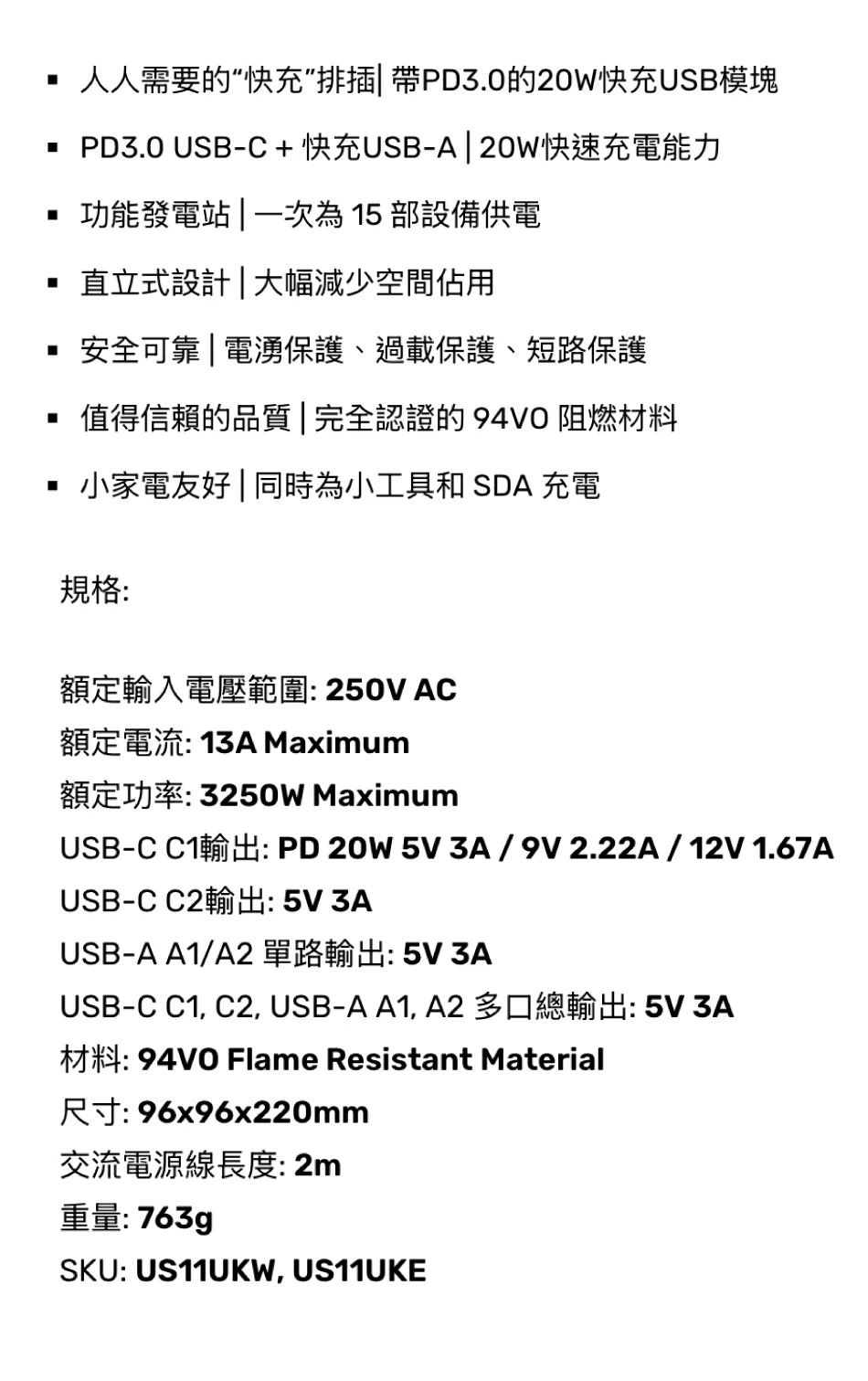 特別是其 PD3.0 20W 快充能力,讓您的主流智能手機和平板電腦能在極短時間內快速回血,真正實現「人人需要的快充排插」。它不僅是電子產品的充電好幫手,更對小家電(SDA)友好,大小電器都能安心使用。