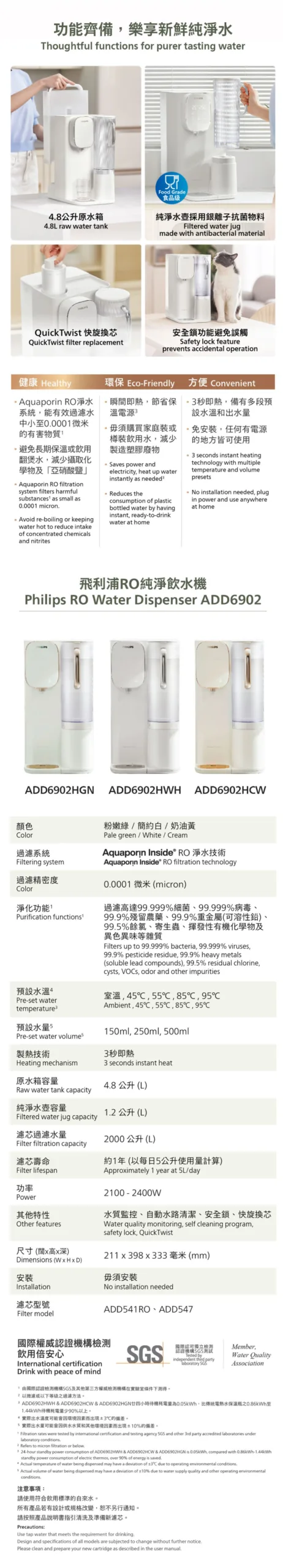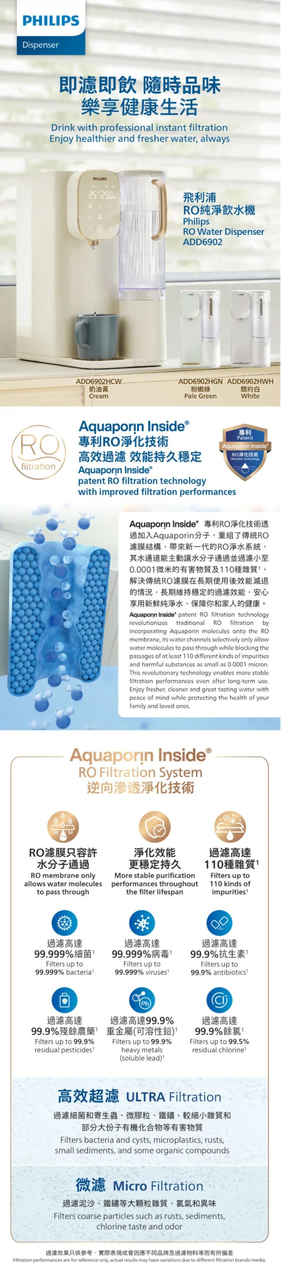 Philips 飛利浦 RO 純淨飲水機 ADD6902(HWH01白色/HCW01米色/HGN01粉嫩綠色)