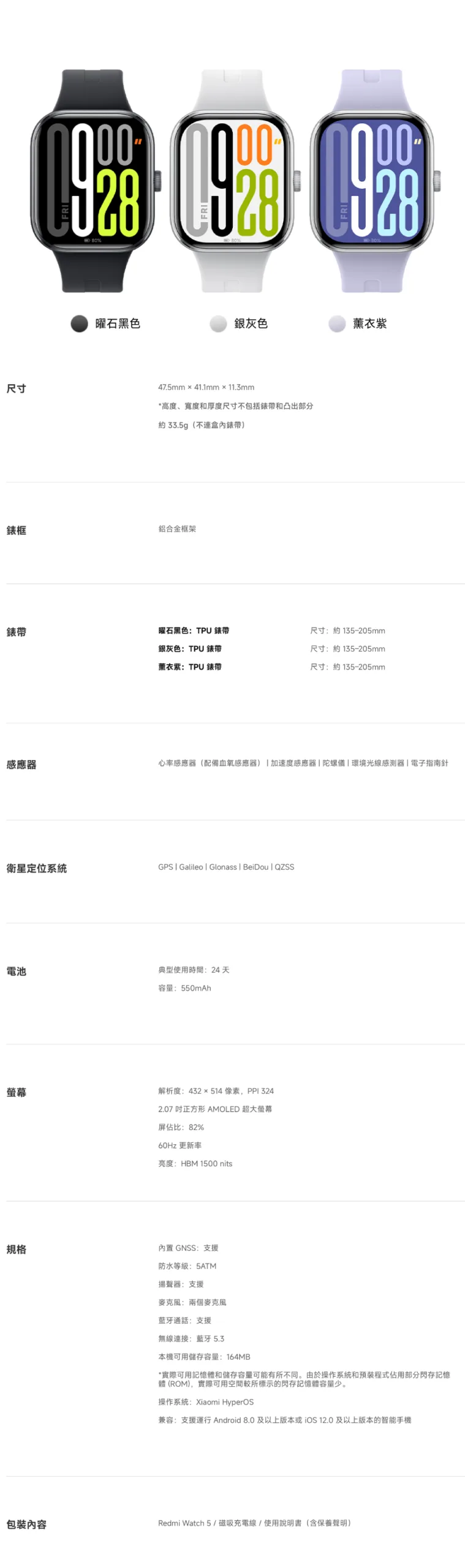 • 150+ 種運動模式、腕上跑步課程、呼吸運動、元氣值