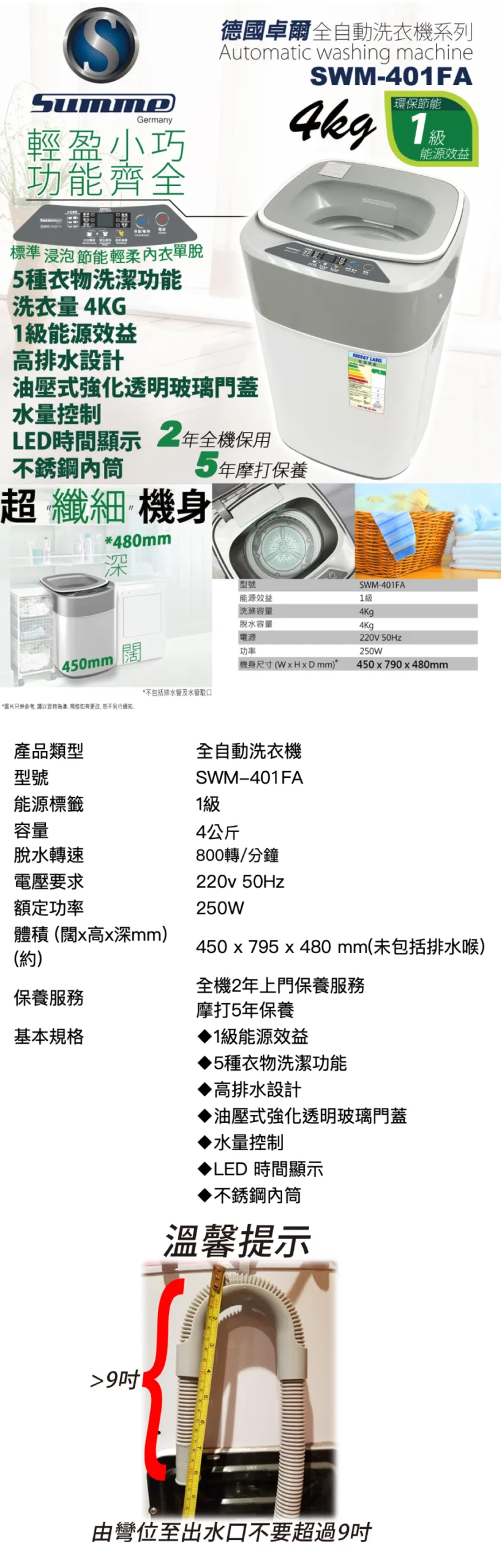 Summe 德國卓爾 全自動洗衣機 (4kg) SWM-401FA