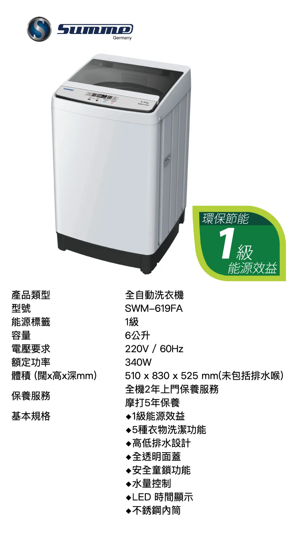 Summe 德國卓爾 全自動洗衣機 (6kg) SWM-619FA
