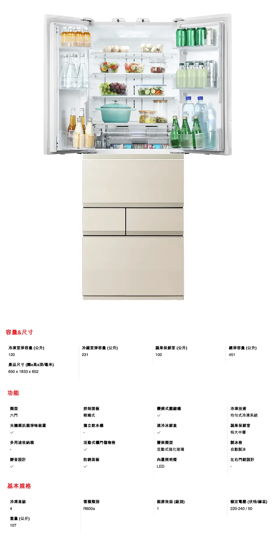 Toshiba 東芝 變頻六門雪櫃 GR-RM598WE-PGA(UC)
