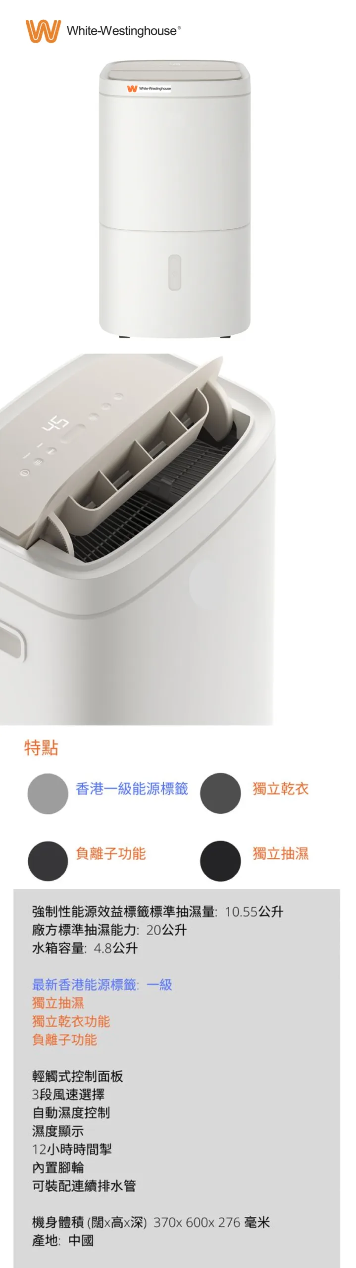 White-Westinghouse 20公升抽濕機 WDE20W1